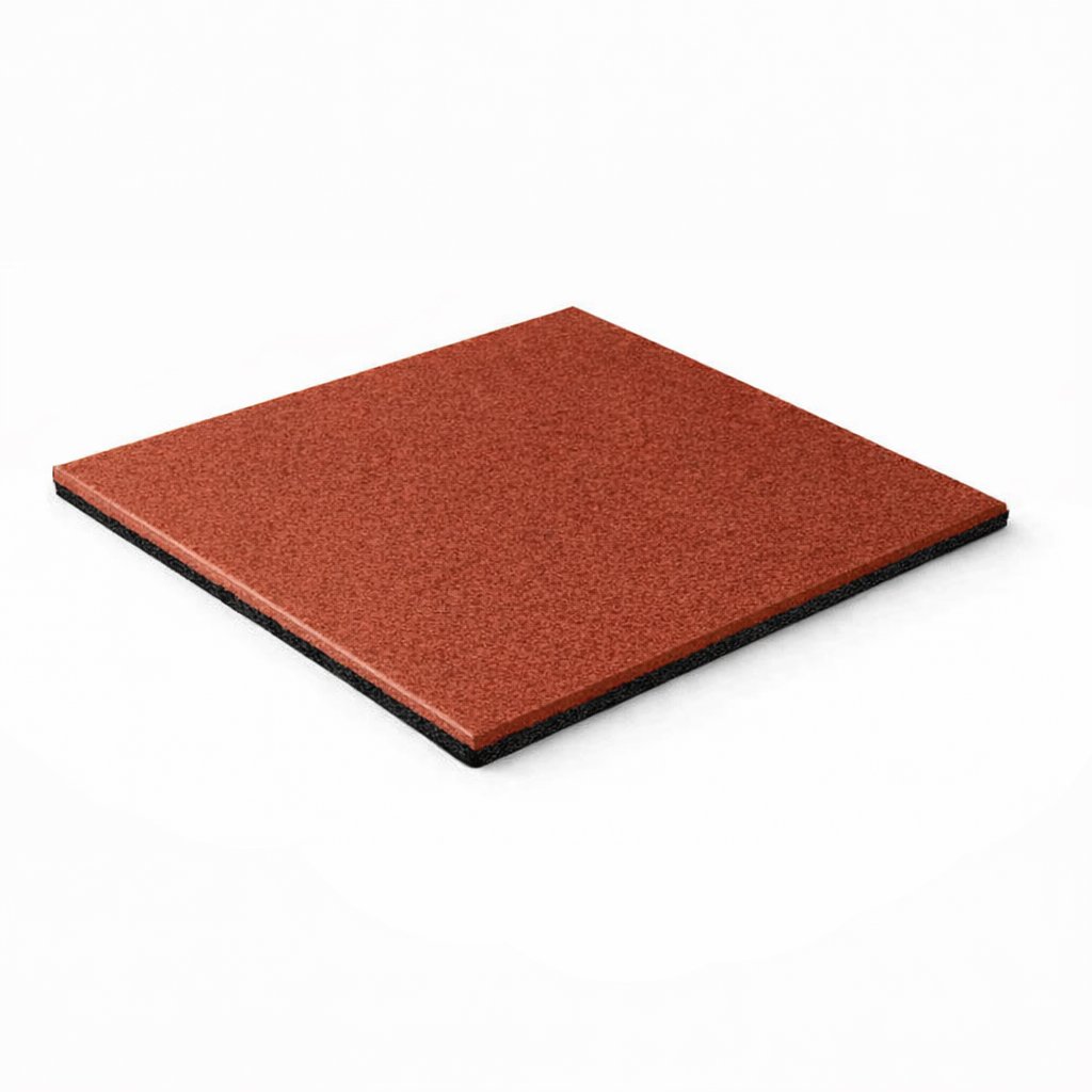 Piso de borracha quadrado fabricado com granulado de borracha reciclada, indicado para academias, áreas fitness, playgrounds e espaços esportivos.